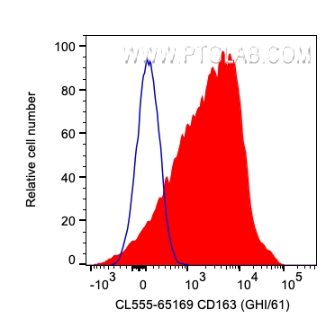 CL555-65169 targets CD163 in FC applications and shows reactivity with Human samples.