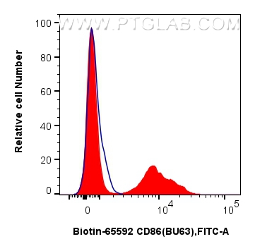 Biotin-65592 targets CD86 in FC applications and shows reactivity with human samples.
