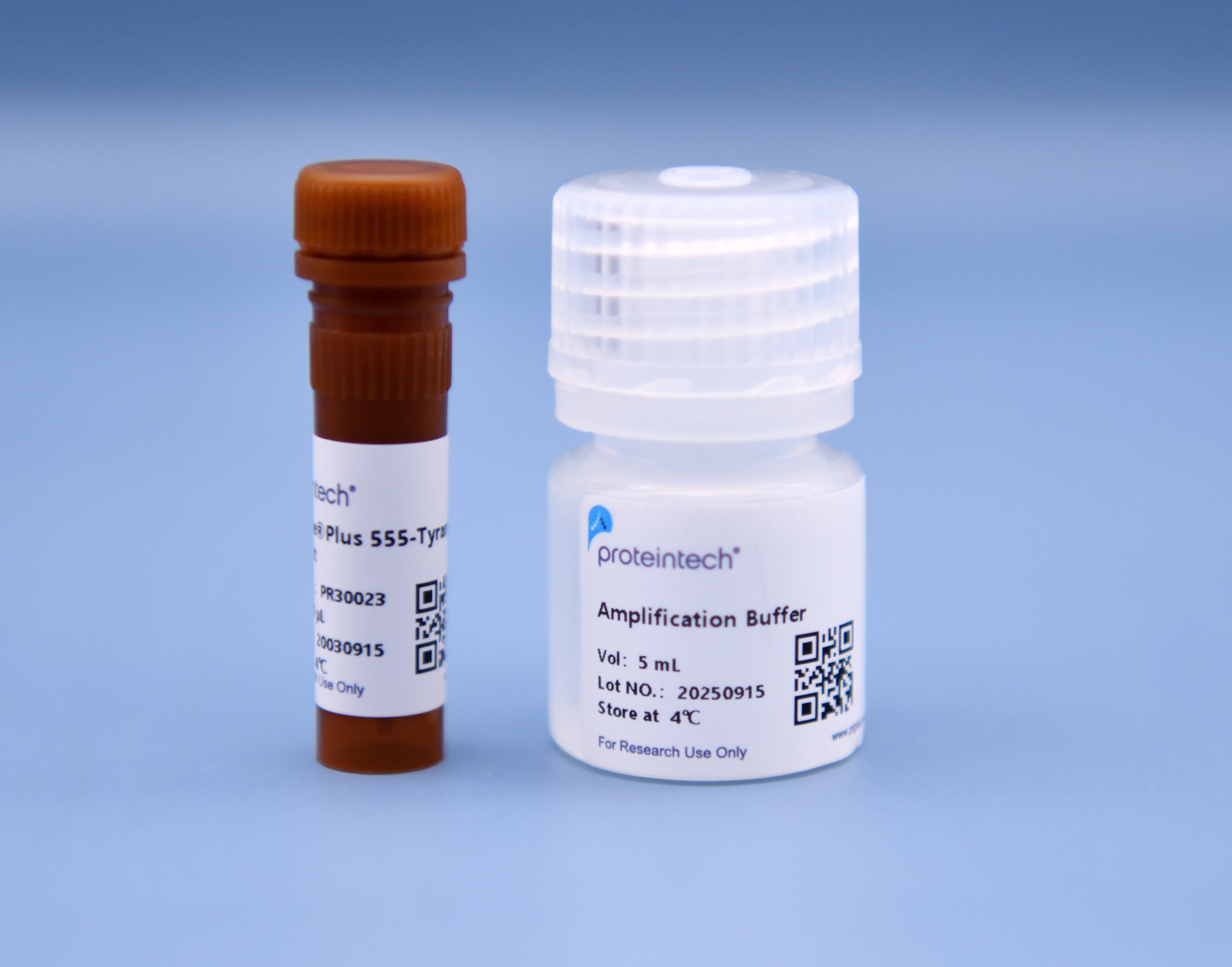本产品为50T规格,包含100 uL CoraLite®Plus 555-TSA染料和5 mL扩增液Amplification Buffer,可以染常规组织切片或细胞爬片约50张/份,注意根据切片大小不同使用次数可能会稍有出入。实验中需要的其他试剂请自行准备或另购。