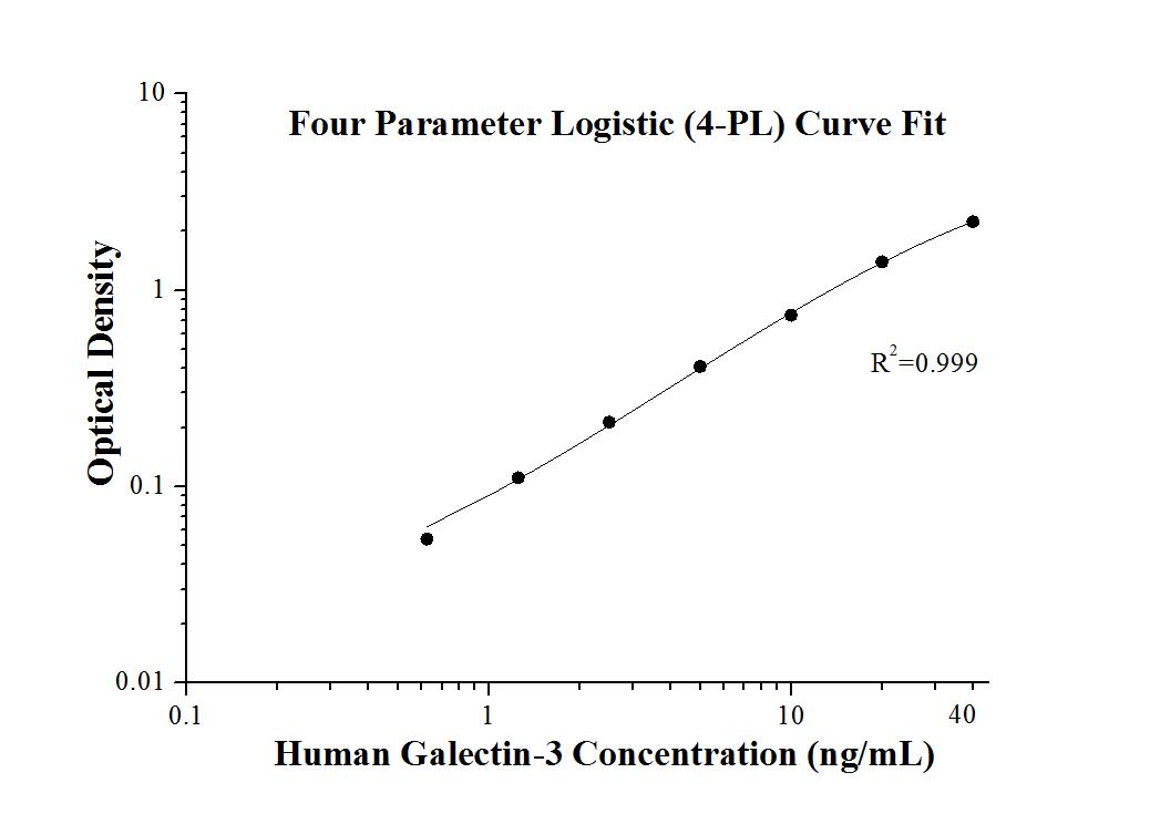 KE00126 is a solid phase sandwich Enzyme Linked-Immuno-Sorbent Assay (Sandwich ELISA). The human Galectin-3 ELISA kit is to be used to detect and quantify protein levels of endogenous human Galectin-3. The assay recognizes human Galectin-3. An antibody specific for human Galectin-3 has been pre-coated onto the microwells. The human Galectin-3 protein in samples is captured by the coated antibody after incubation. Following extensive washing, another antibody of biotinylated specific for human Galectin-3 is added to detect the captured human Galectin-3 protein. For signal development, Streptavidin-HRP is added, followed by Tetramethyl-benzidine (TMB) reagent. Solution containing sulfuric acid is used to stop color development and the color intensity which is proportional to the quantity of bound protein is measurable at 450 nm with the correction wavelength set at 630 nm.