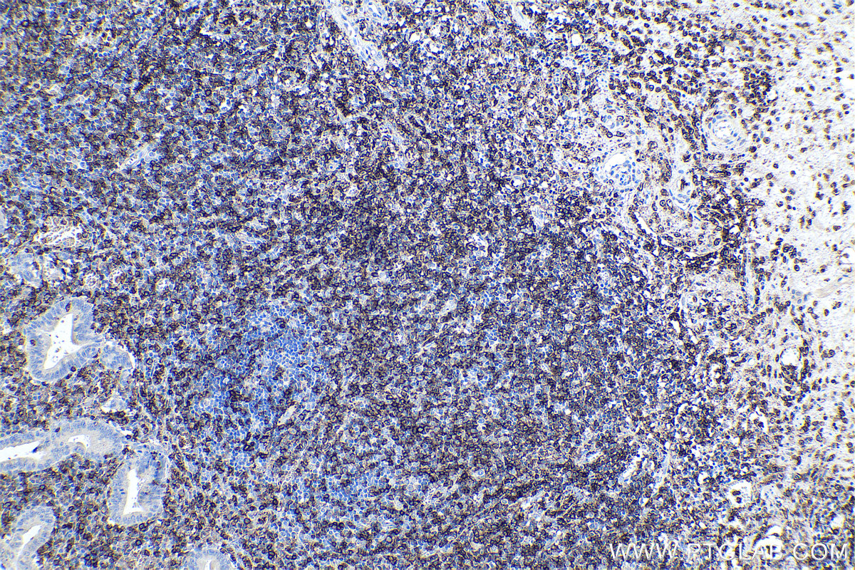 CD43, also named leukosialin, sialophorin, galactoglycoprotein, leukocyte sialoglycoprotein, SPN, and is a mucin-like type I transmembrane protein. In humans, it is expressed in haematopoietic cells, including T lymphocytes, monocytes, granulocytes, natural killer cells, platelets, and haematopoietic stem cells, with the exception of mature erythrocytes and B cell subpopulations.