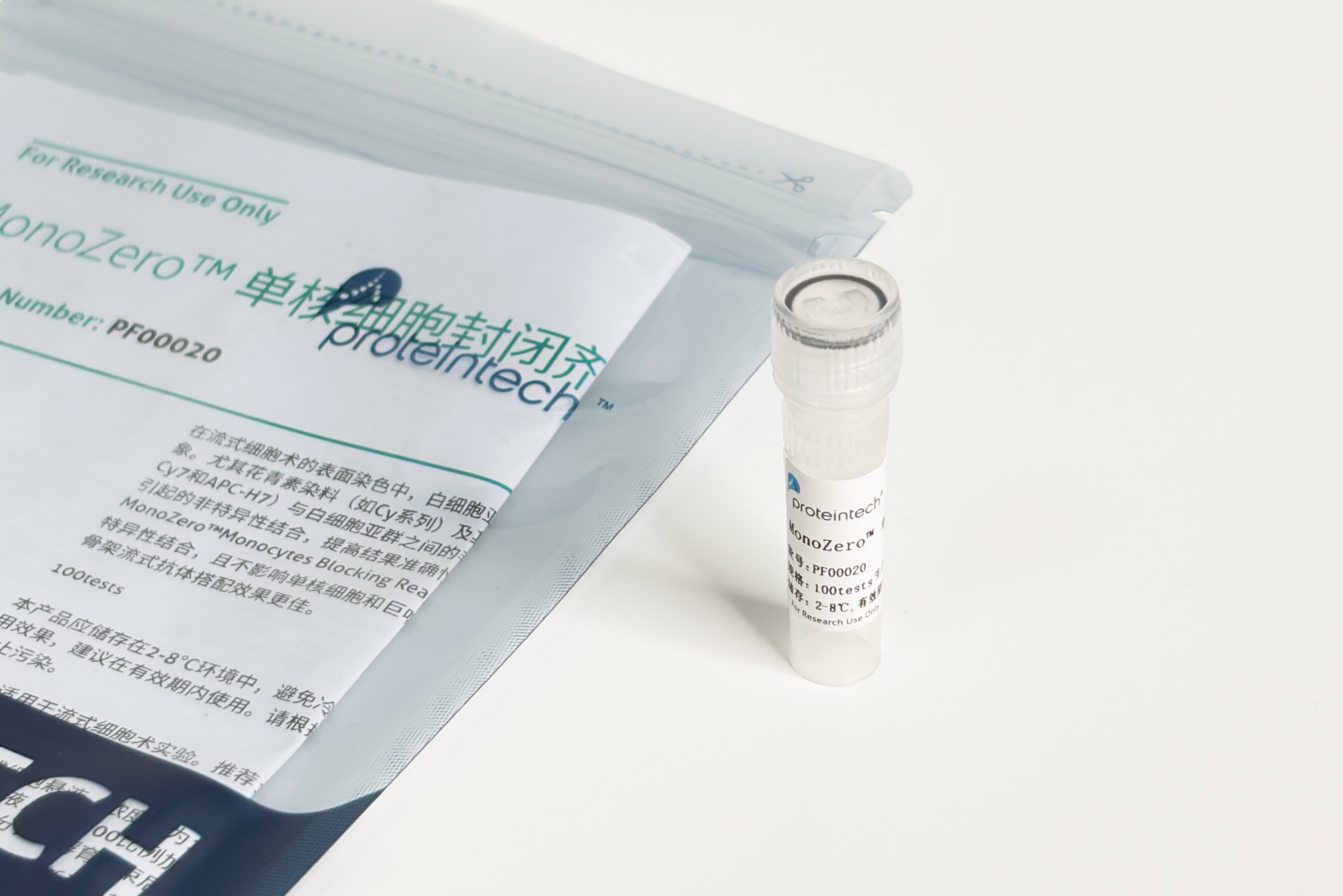MonoZero™ Monocytes Blocking Reagent是一种非抗体的阻断缓冲液,能减少花青素荧光基团与单核细胞和巨噬细胞的非特异性结合,且不影响单核细胞和巨噬细胞预期的特异性染色,与Fc受体阻断剂或将传统流式抗体更换为FcZero-rAb®新型骨架流式抗体搭配效果更佳。