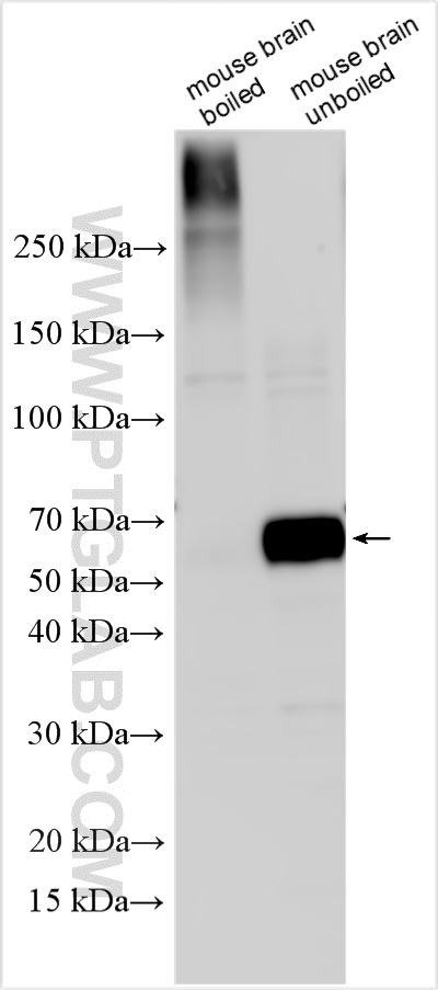 For optimal WB detection with 55491-1-AP, we do not recommend boiling the sample after lysis.