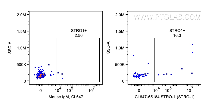 CL647-65184 targets STRO-1 in FC applications and shows reactivity with human samples.