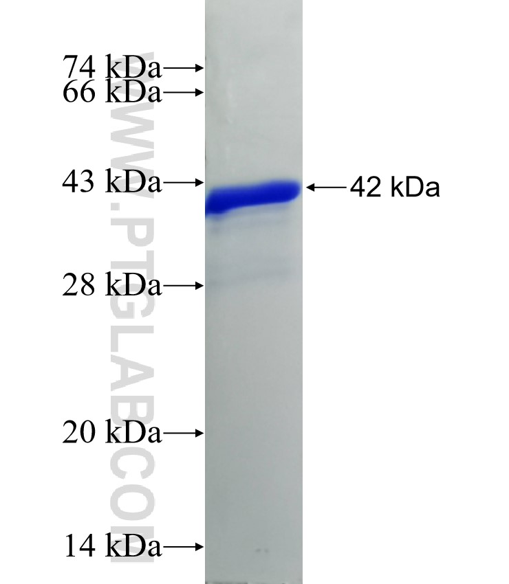 | Formulation | The purified protein was Lyophilized from sterile PBS (58mM Na2HPO4,17mM NaH2PO4, 68mM NaCl, pH8.0). 5 % trehalose and 5 % mannitol are added as protectant before lyophilization. The elution buffer contain 100mM GSH. |