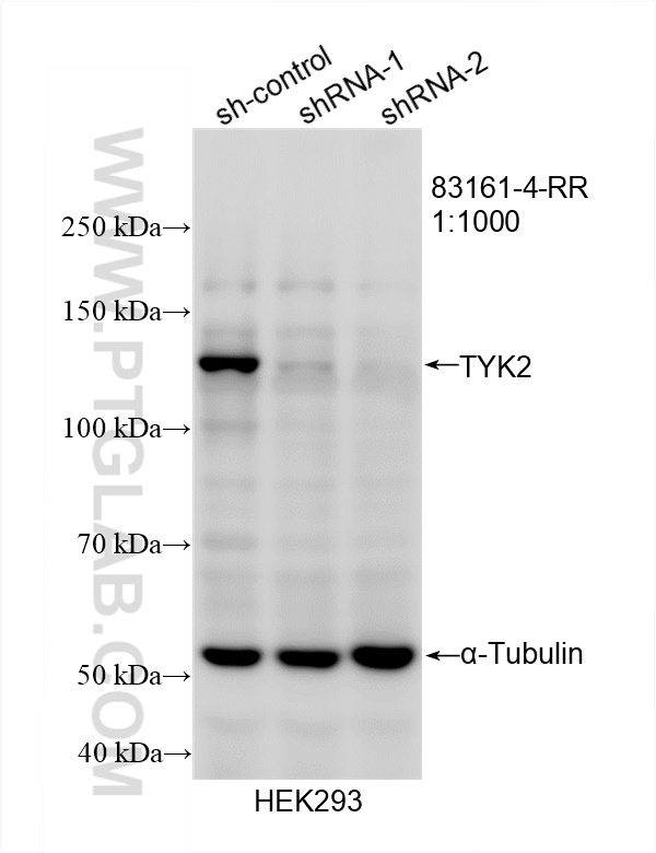 83161-4-PBS targets TYK2 in WB, IHC, IF/ICC, FC (Intra), Indirect ELISA applications and shows reactivity with human samples.