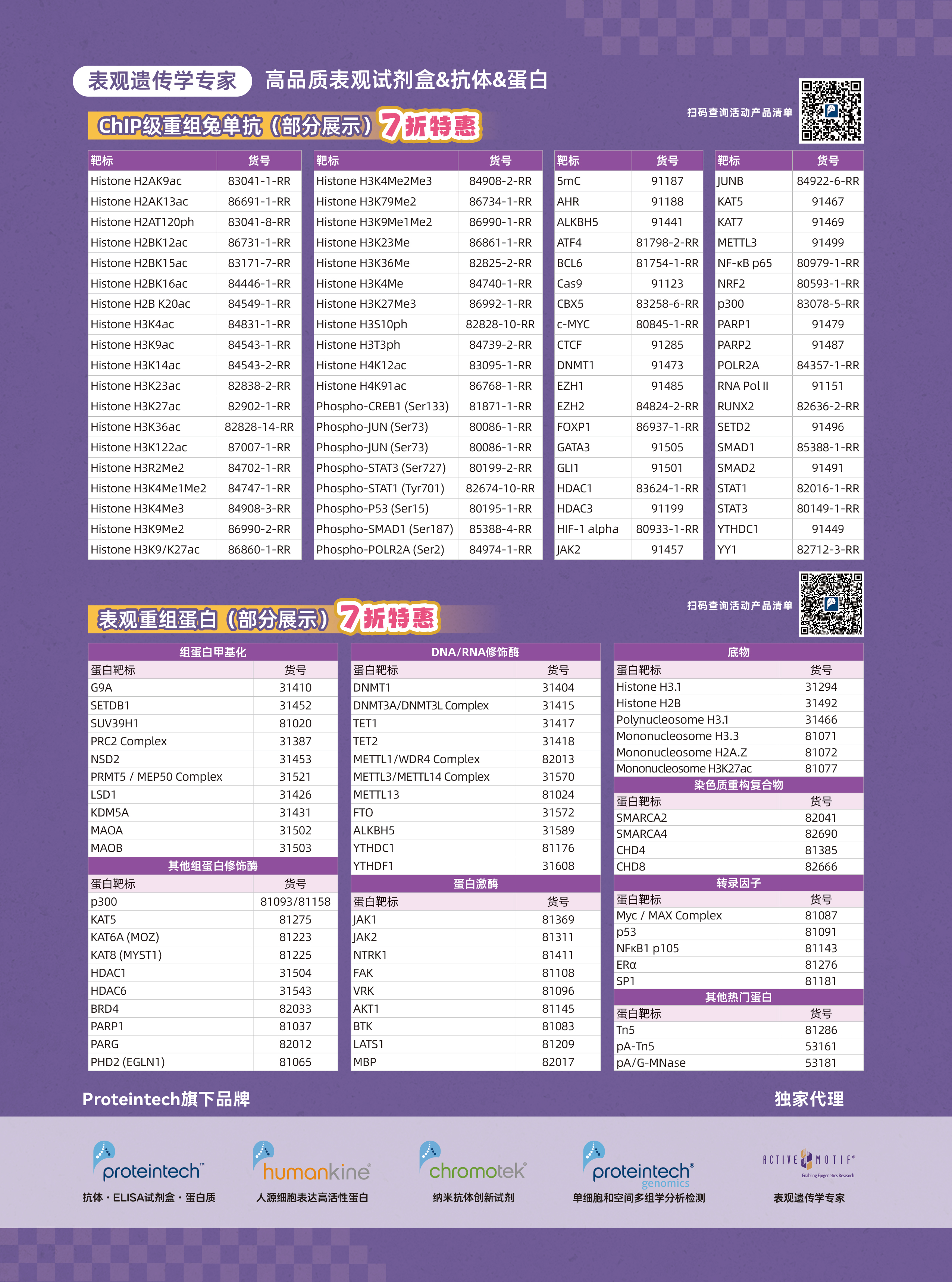 1.活动产品为Proteintech品牌以及Active Motif品牌旗下重组蛋白和部分重组免单抗,具体重组免单抗活动产品如下表。