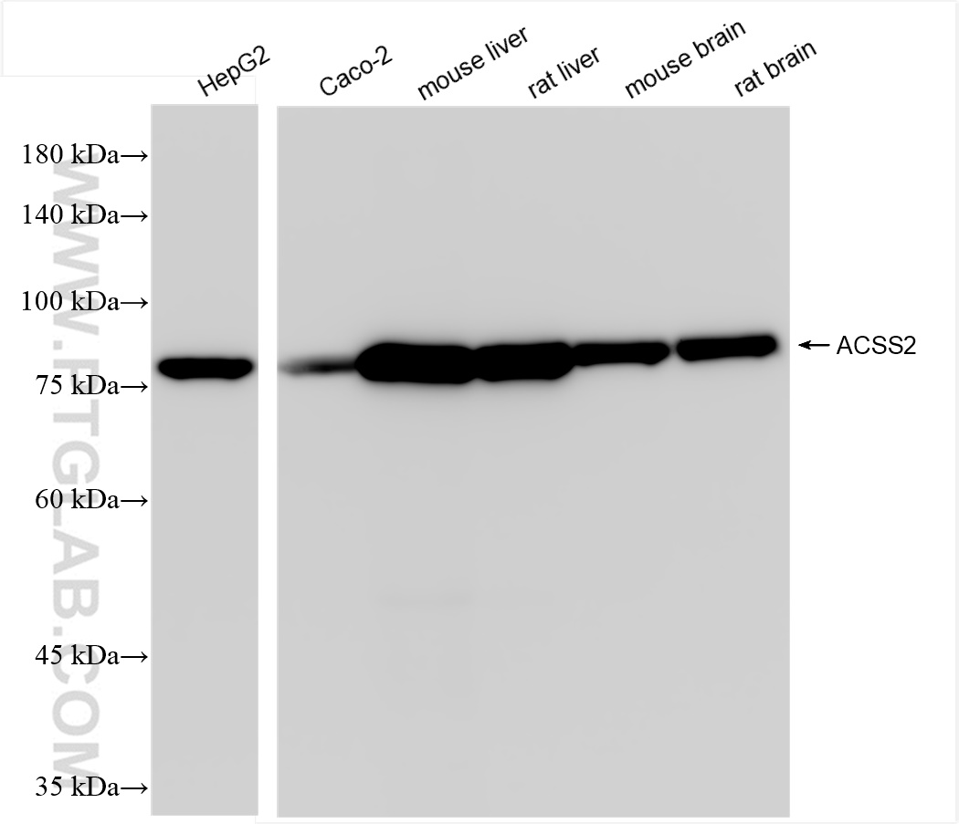 84774-7-PBS targets ACSS2 in WB, FC (Intra), Indirect ELISA applications and shows reactivity with human, mouse, rat samples.