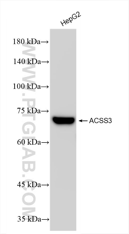 ACSS3(acyl-CoA synthetase short-chain family member 3, mitochondrial) belongs to the ATP-dependent AMP-binding enzyme family. It activates acetate so that it can be used for lipid synthesis or for energy generation. The deduced 686-amino acid protein contains 4 of 5 motifs characteristic of acyl-CoA synthetases. This protein has 2 isoforms produced by alternative splicing. The full length protein has a transit peptide with 29 amino acids.