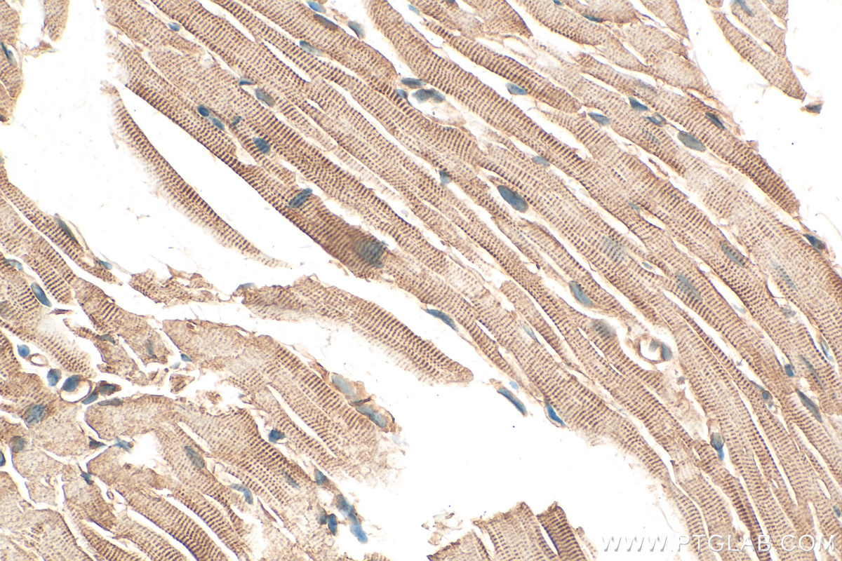 | Positive IHC detected in | mouse heart tissue, mouse skeletal muscle tissue Note: suggested antigen retrieval with TE buffer pH 9.0; (*) Alternatively, antigen retrieval may be performed with citrate buffer pH 6.0 |