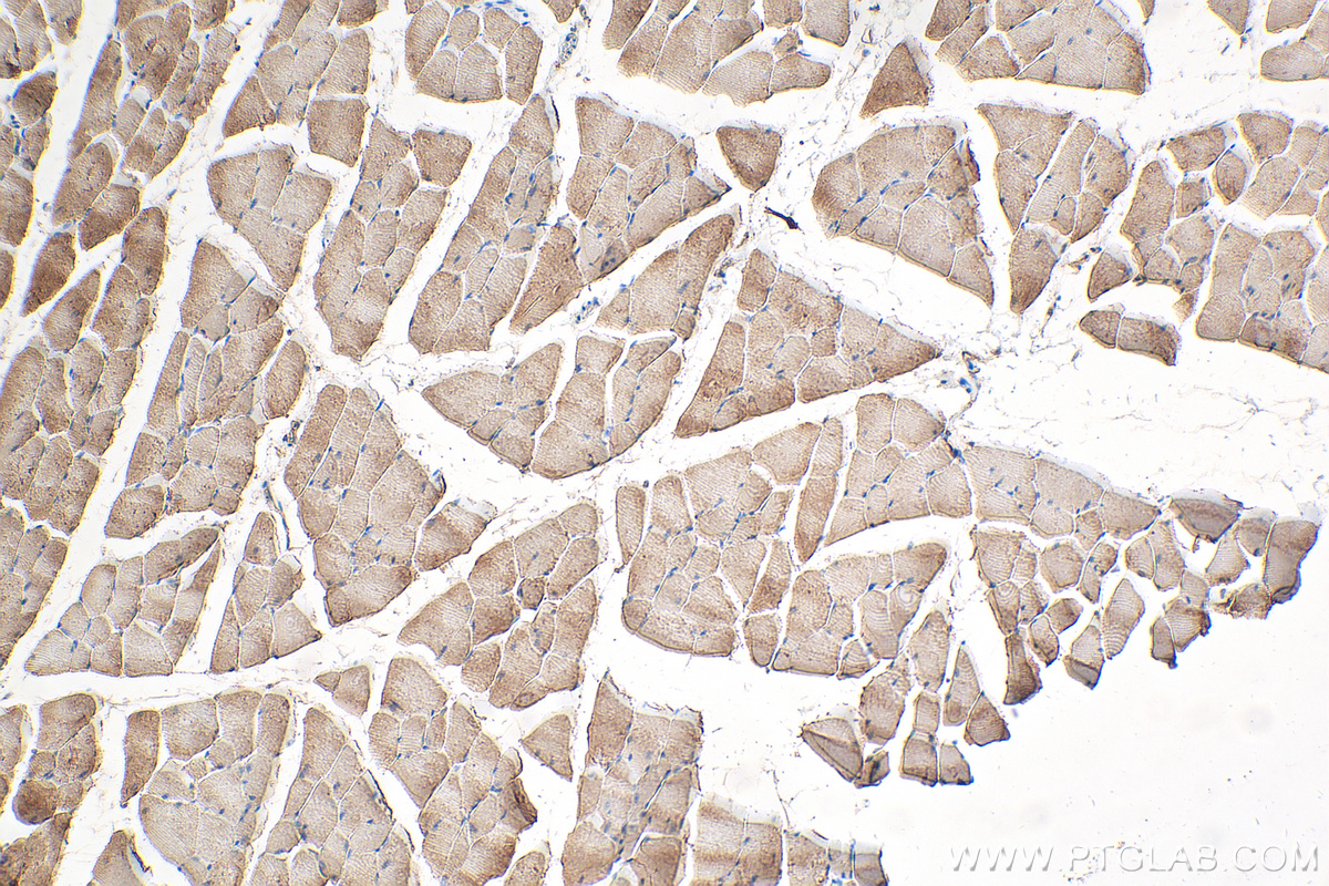 | Positive WB detected in | mouse brain tissue, C2C12 cells, mouse lung tissue, mouse skeletal muscle tissue, mouse heart, mouse kidney, rat skeletal muscle |