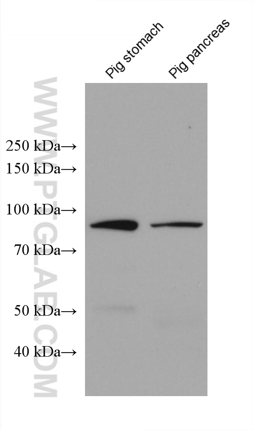 68113-1-PBS targets ADAM8 in WB, FC, Indirect ELISA applications and shows reactivity with human, pig samples.
