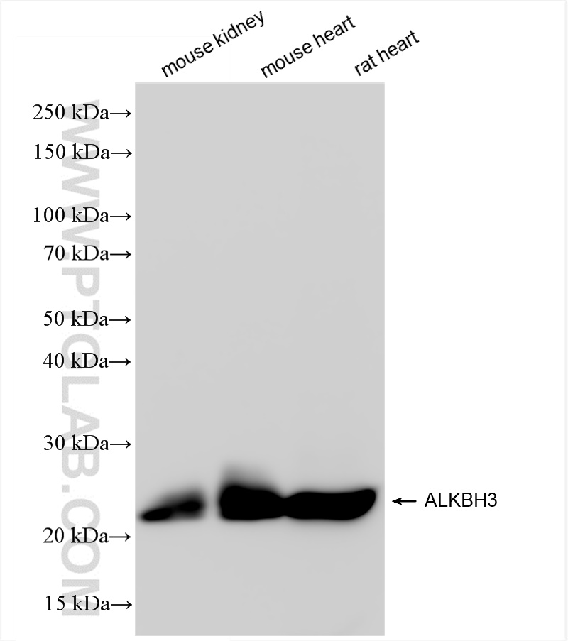 84314-3-RR targets ALKBH3 in WB, IF/ICC, FC (Intra), ELISA applications and shows reactivity with human, mouse, rat samples.