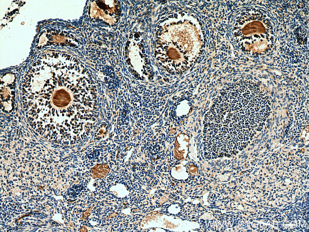| Positive IHC detected in | mouse ovary tissue, human pancreas tissue, rat ovary tissue, human ovary tumor tissue, human testis tissue Note: suggested antigen retrieval with TE buffer pH 9.0; (*) Alternatively, antigen retrieval may be performed with citrate buffer pH 6.0 |