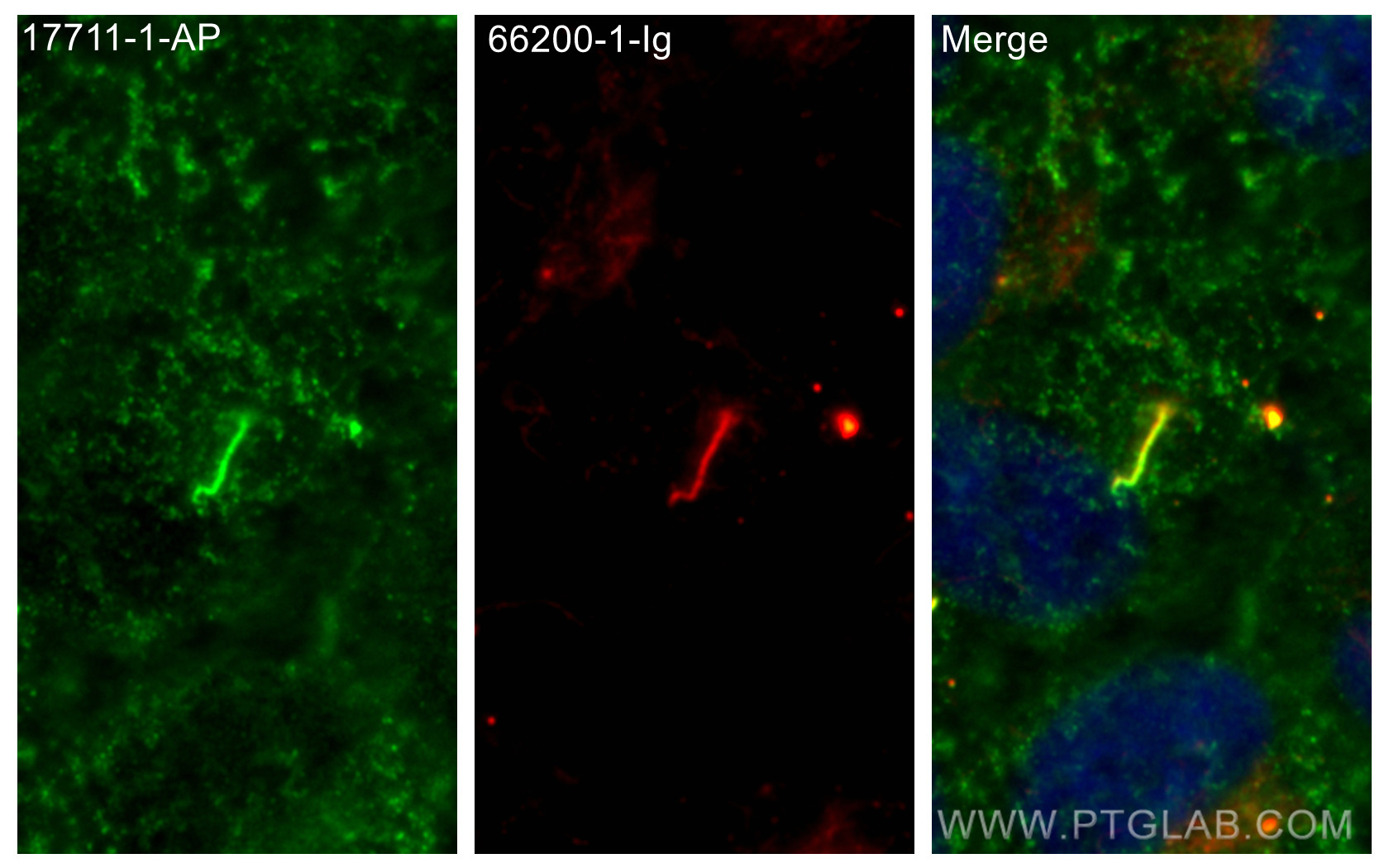 17711-1-AP targets ARL13B in WB, IHC, IF/ICC, IP, ELISA applications and shows reactivity with human, mouse, rat, canine samples.