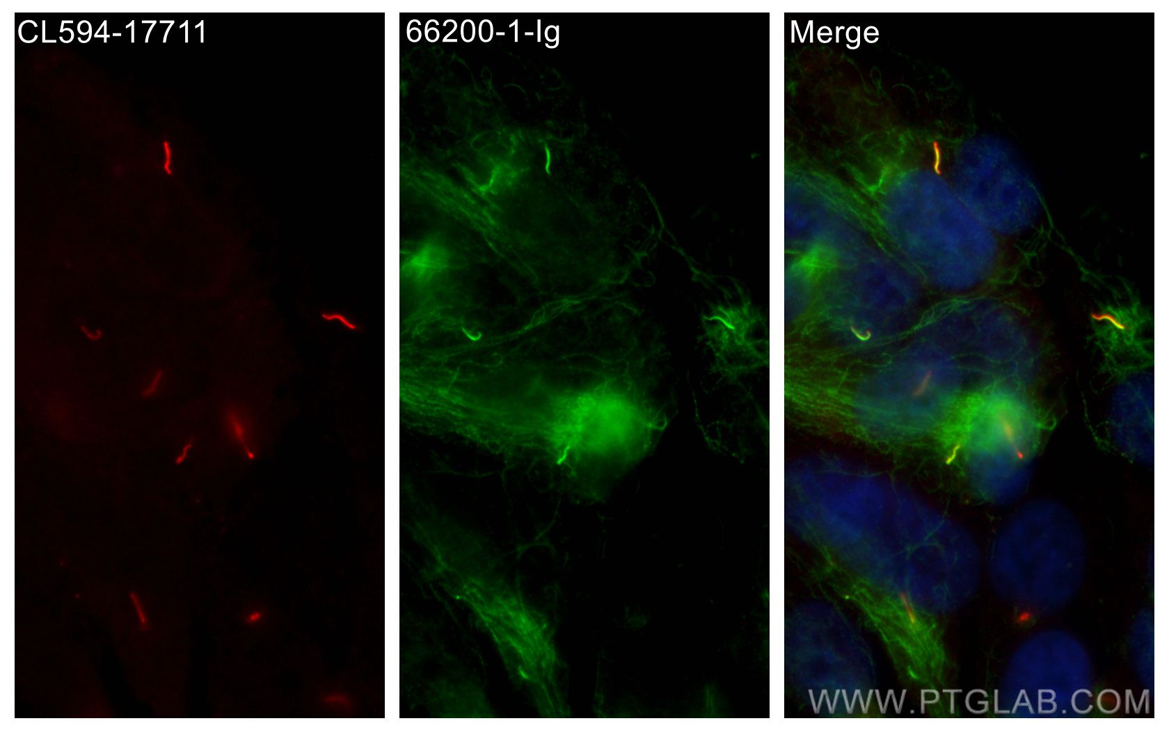 CL594-17711 targets ARL13B in IF/ICC applications and shows reactivity with human, mouse, rat, canine samples.