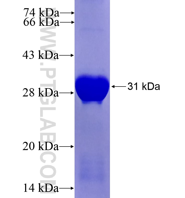 | Formulation | The purified protein was Lyophilized from sterile PBS (58mM Na2HPO4,17mM NaH2PO4, 68mM NaCl, pH7.4). 5 % trehalose and 5 % mannitol are added as protectant before lyophilization. The elution buffer contain 300mM imidazole. |