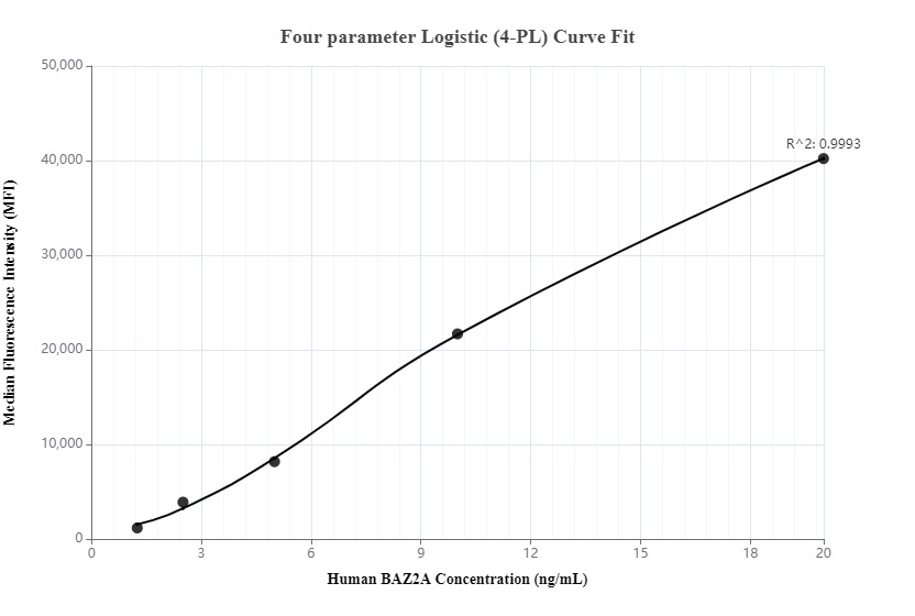 BAZ2A (bromodomain adjacent to zinc finger domain 2A), also known as TIP5. It is expected to be located in nucleus, and the protein is expressed at moderate levels in most tissues analyzed, including heart, brain, placenta, lung, skeletal muscle, kidney and pancreas. BAZ2A is an epigenetic regulator affecting transcription of ribosomal RNA, it is also a regulatory subunit of the ATP-dependent NoRC-1 and NoRC-5 ISWI chromatin remodeling complexes, which form ordered nucleosome arrays on chromatin and facilitate access to DNA during DNA-templated processes such as DNA replication, transcription, and repair (PubMed:28801535). The calculated molecular weight of BAZ2A is 210 kDa.
