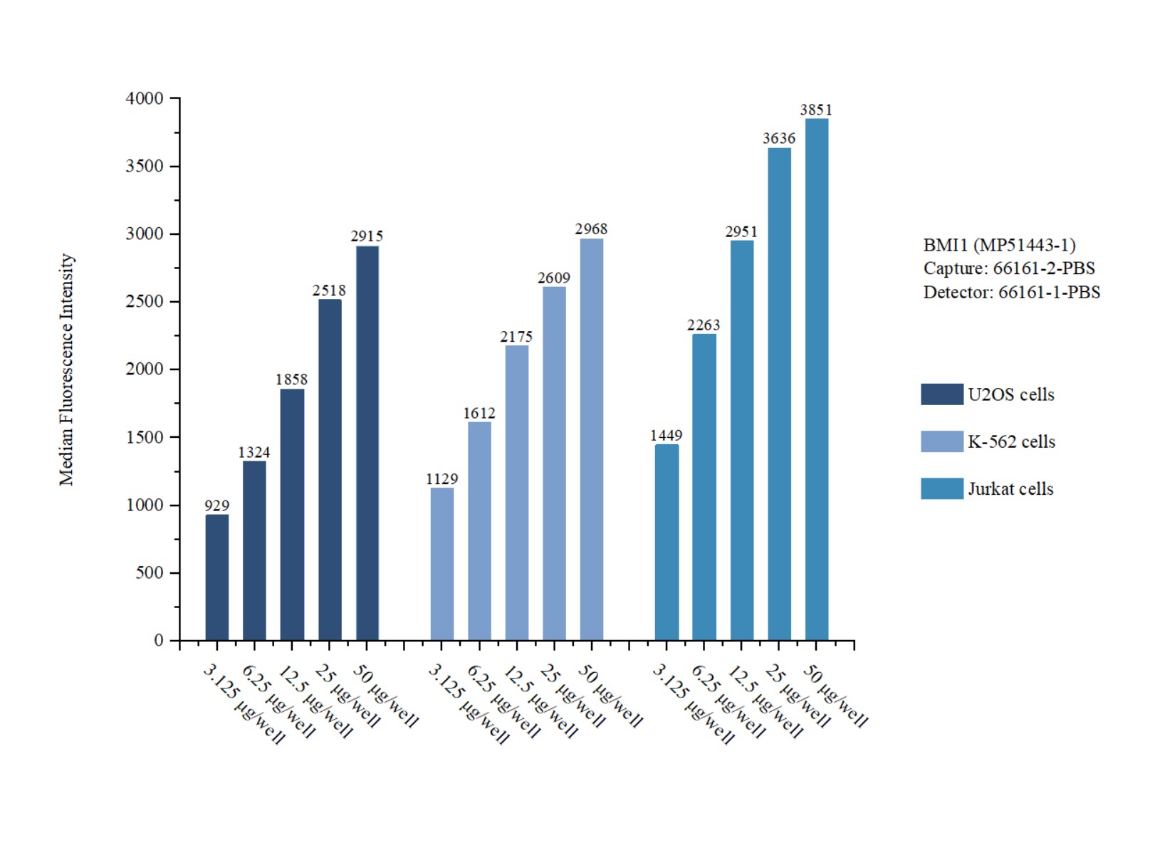 66161-1-PBS targets BMI1 as part of a matched antibody pair: