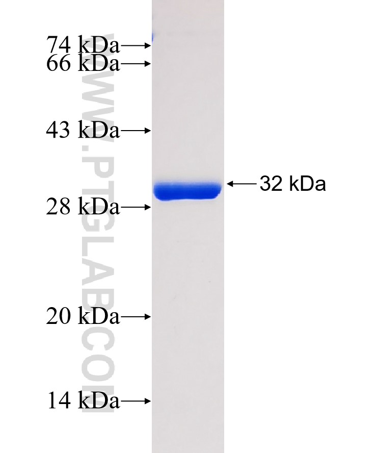 | Formulation | The purified protein was Lyophilized from sterile PBS (58mM Na2HPO4,17mM NaH2PO4, 68mM NaCl, pH8.0). 5 % trehalose and 5 % mannitol are added as protectant before lyophilization. The elution buffer contain 100mM GSH. |