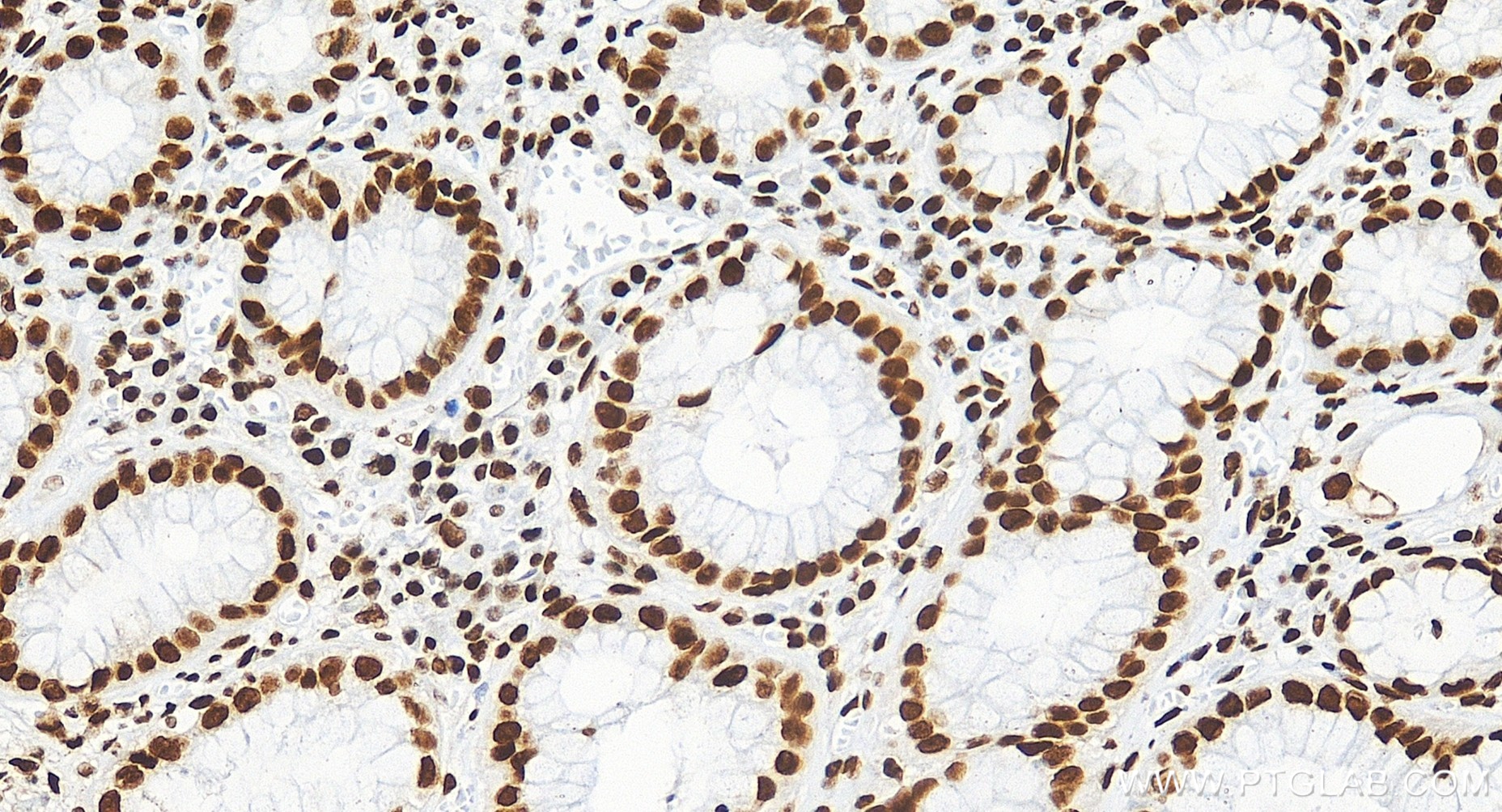 Positive IHC detected in | human colon cancer tissue, human stomach tissue Note: suggested antigen retrieval with TE buffer pH 9.0; (*) Alternatively, antigen retrieval may be performed with citrate buffer pH 6.0 |