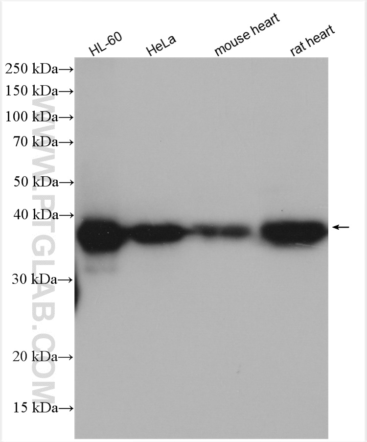| Positive WB detected in | HeLa cells, HL-60 cells, mouse heart tissue, rat heart tissue, rat lung tissue |