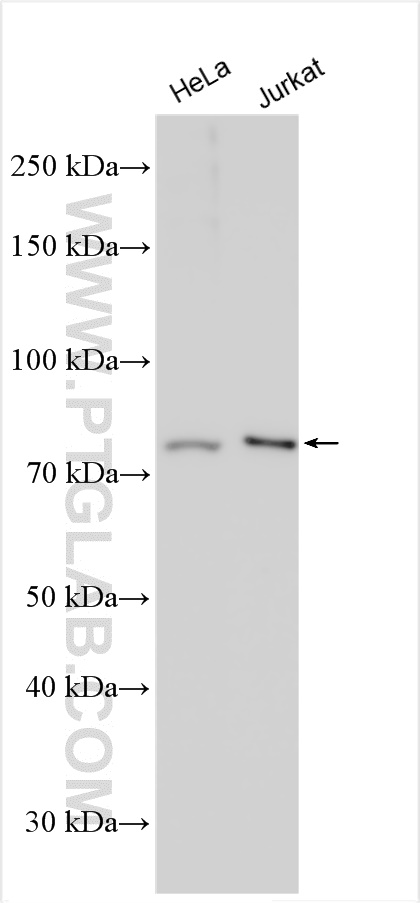 | Positive WB detected in | HeLa cells, A431 cells, Jurkat cells, K-562 cells, Y79 cells |