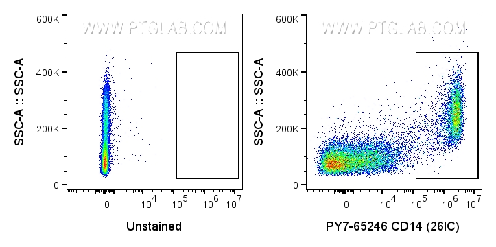 PY7-65246 targets CD14 in FC applications and shows reactivity with human samples.