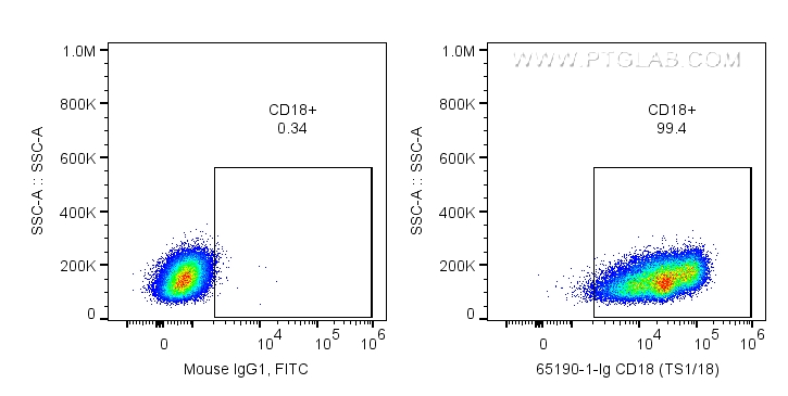 65190-1-Ig targets CD18 in FC applications and shows reactivity with human samples.