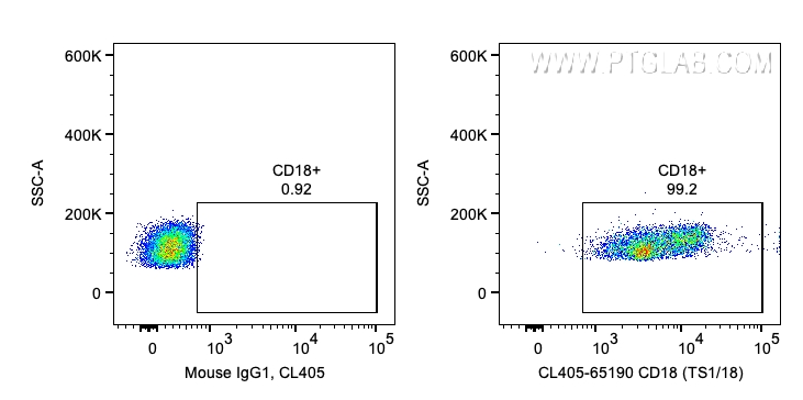 CL405-65190 targets CD18 in FC applications and shows reactivity with human samples.