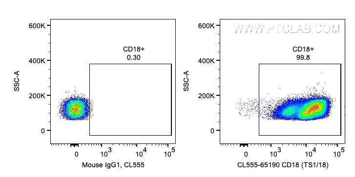 CL555-65190 targets CD18 in FC applications and shows reactivity with Human samples.