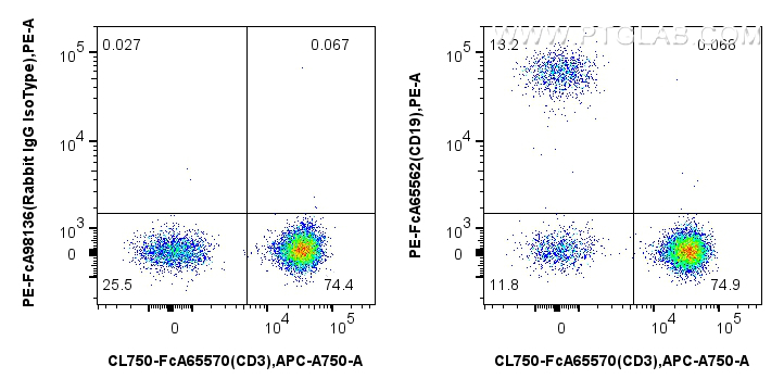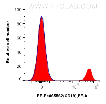 PE-FcA65562 targets CD19 in FC applications and shows reactivity with human samples.