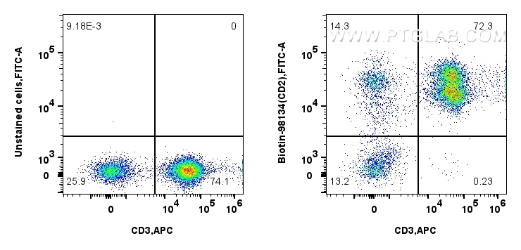 Biotin-98134 targets CD2 in FC applications and shows reactivity with human samples.