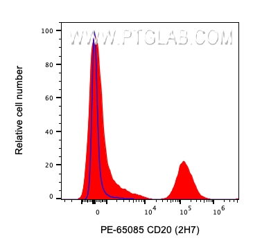 PE-65085 targets CD20 in FC applications and shows reactivity with human samples.