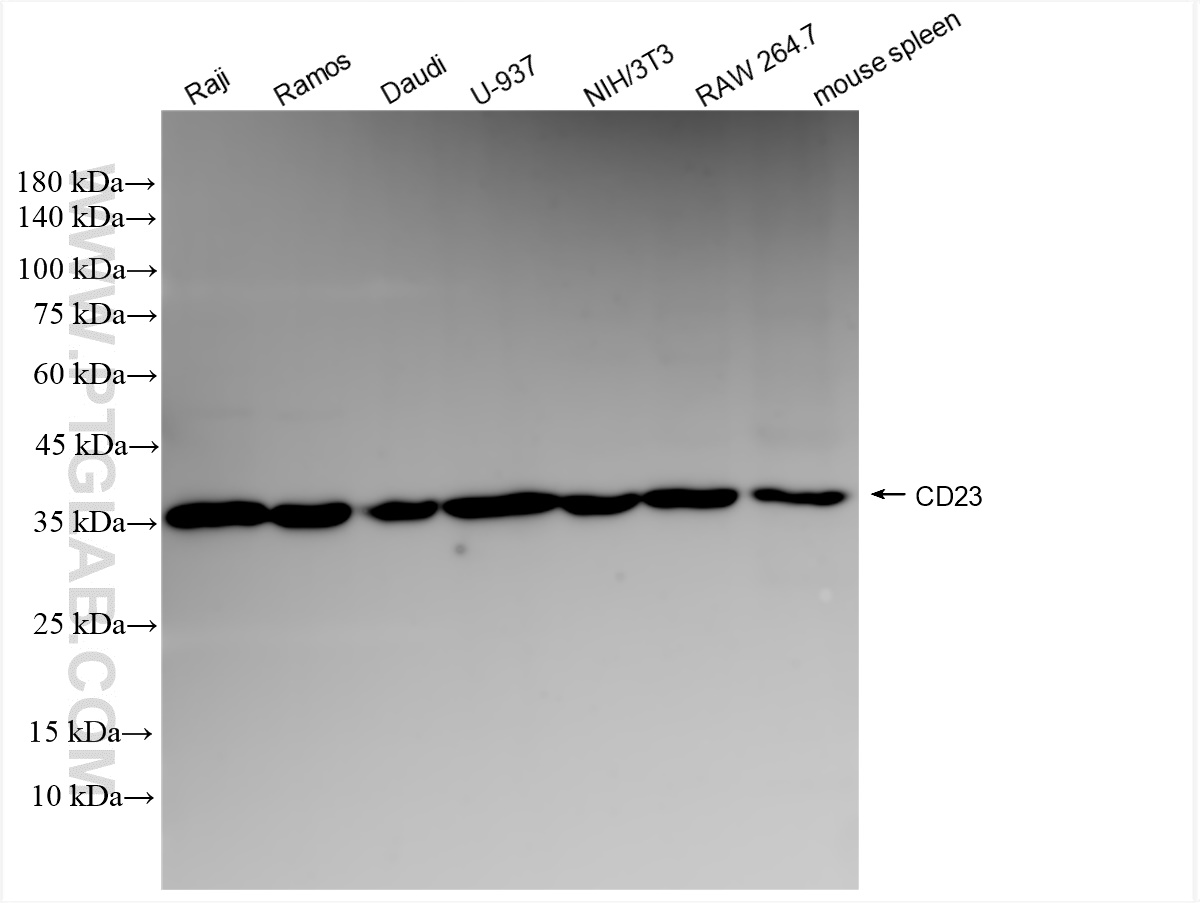 | Positive WB detected in | Raji cells, Ramos cells, Daudi cells, U-937 cells, NIH/3T3 cells, RAW 264.7 cells, mouse spleen tissue |