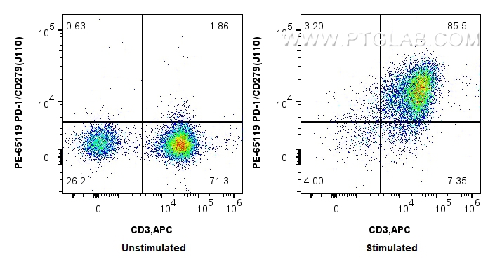 PE-65119 targets PD-1/CD279 in FC applications and shows reactivity with human samples.