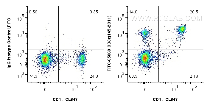 FITC-65060 targets CD3e in FC applications and shows reactivity with mouse samples.