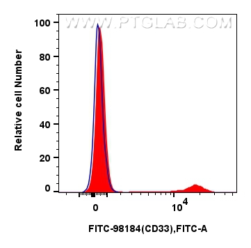 FITC-98184 targets CD33 in FC applications and shows reactivity with human samples.