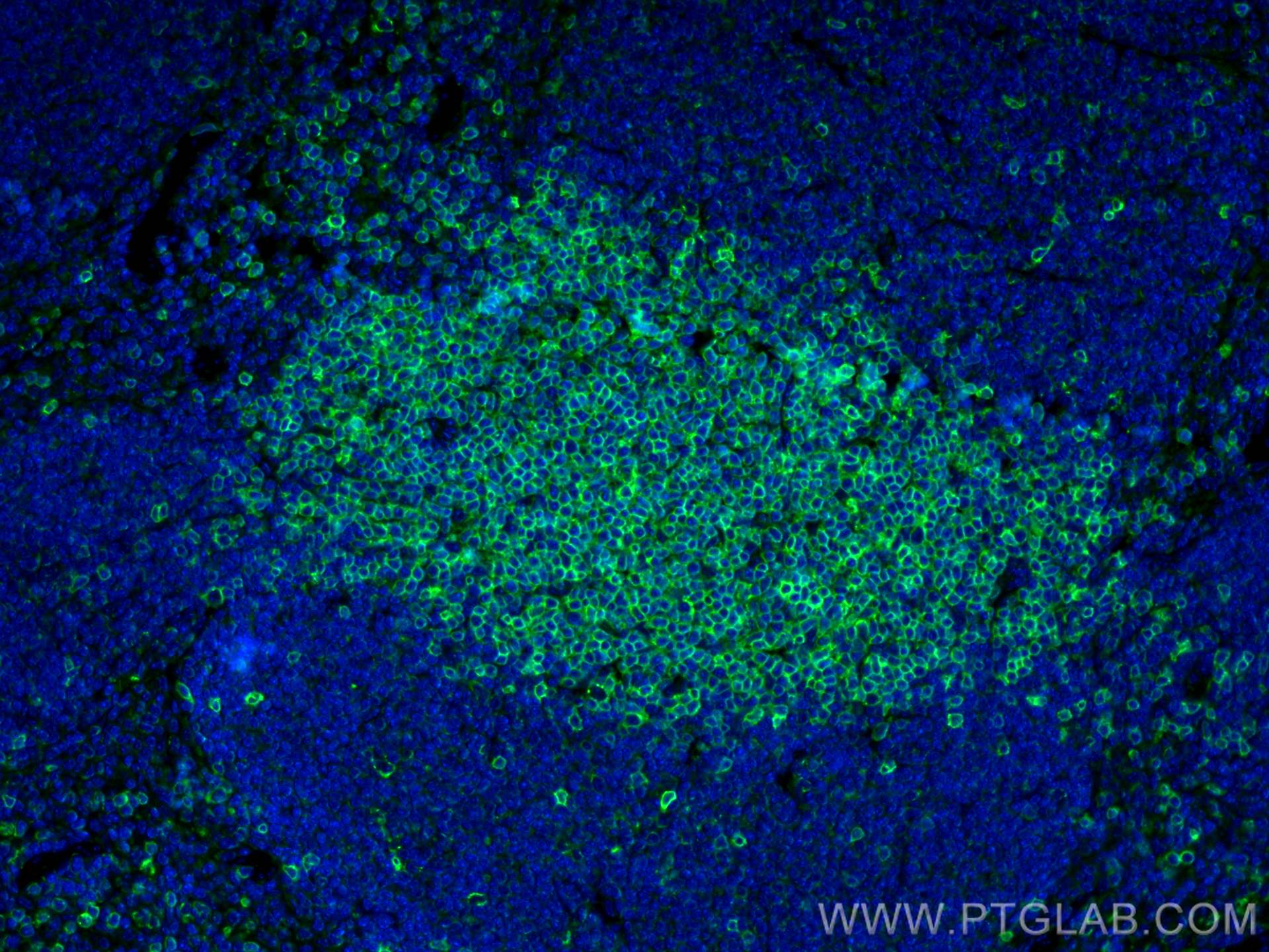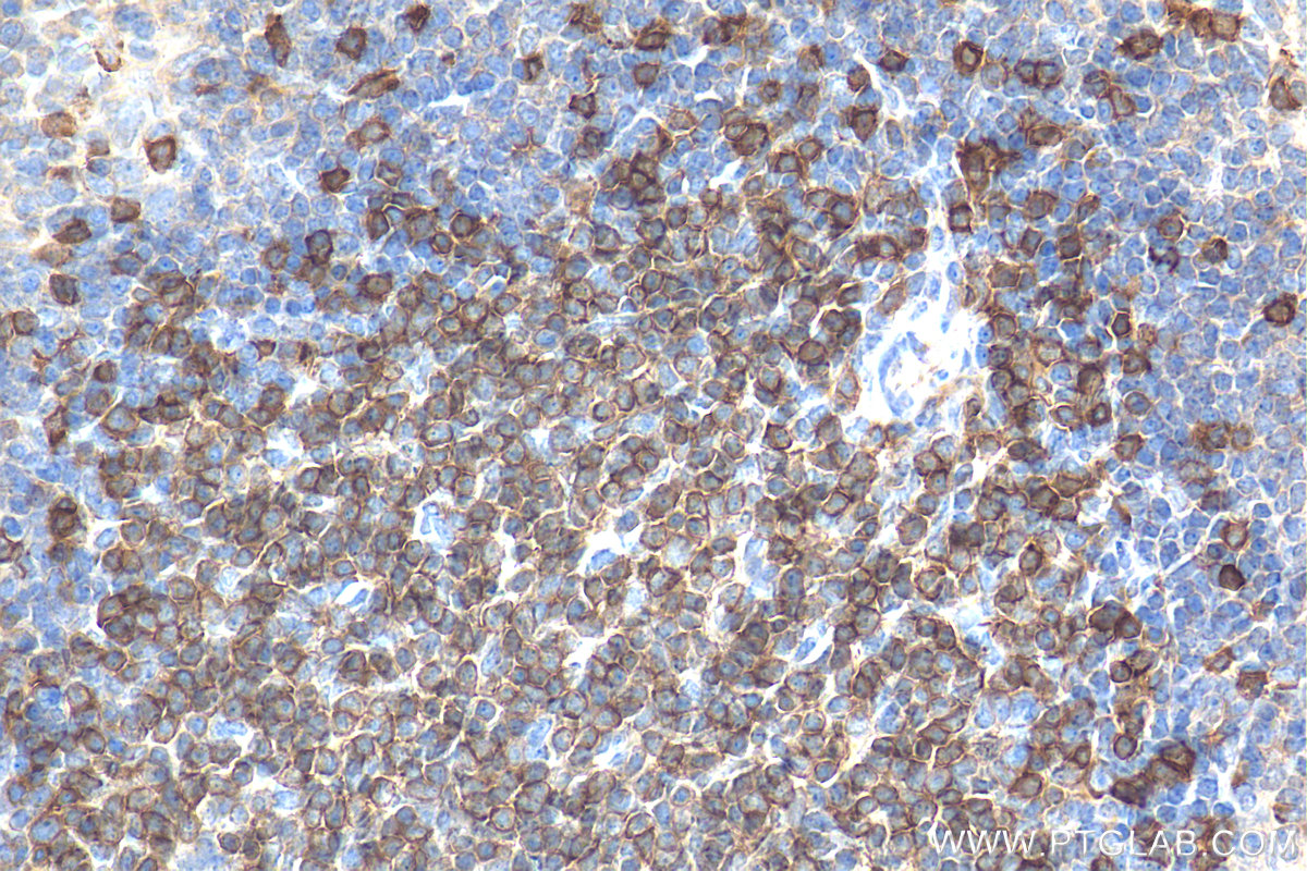 | Positive IHC detected in | human tonsillitis tissue, mouse spleen tissue, human lymphoma tissue, human lung cancer tissue, human breast cancer tissue, mouse colon tissue, human pancreas cancer tissue, rat thymus tissue Note: suggested antigen retrieval with TE buffer pH 9.0; (*) Alternatively, antigen retrieval may be performed with citrate buffer pH 6.0 |