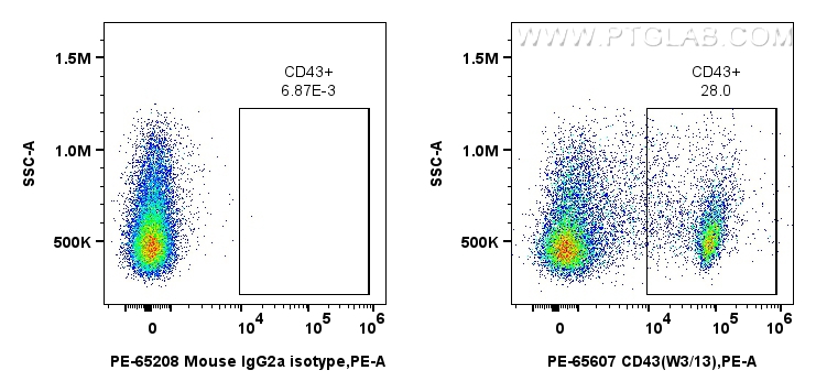 PE-65607 targets CD43 in FC applications and shows reactivity with rat samples.