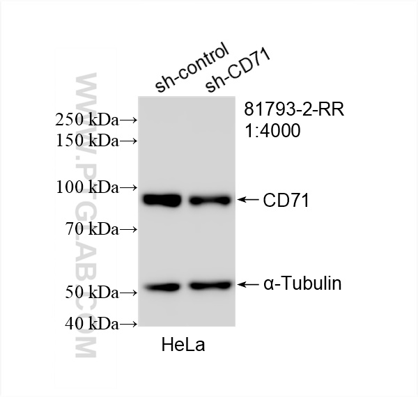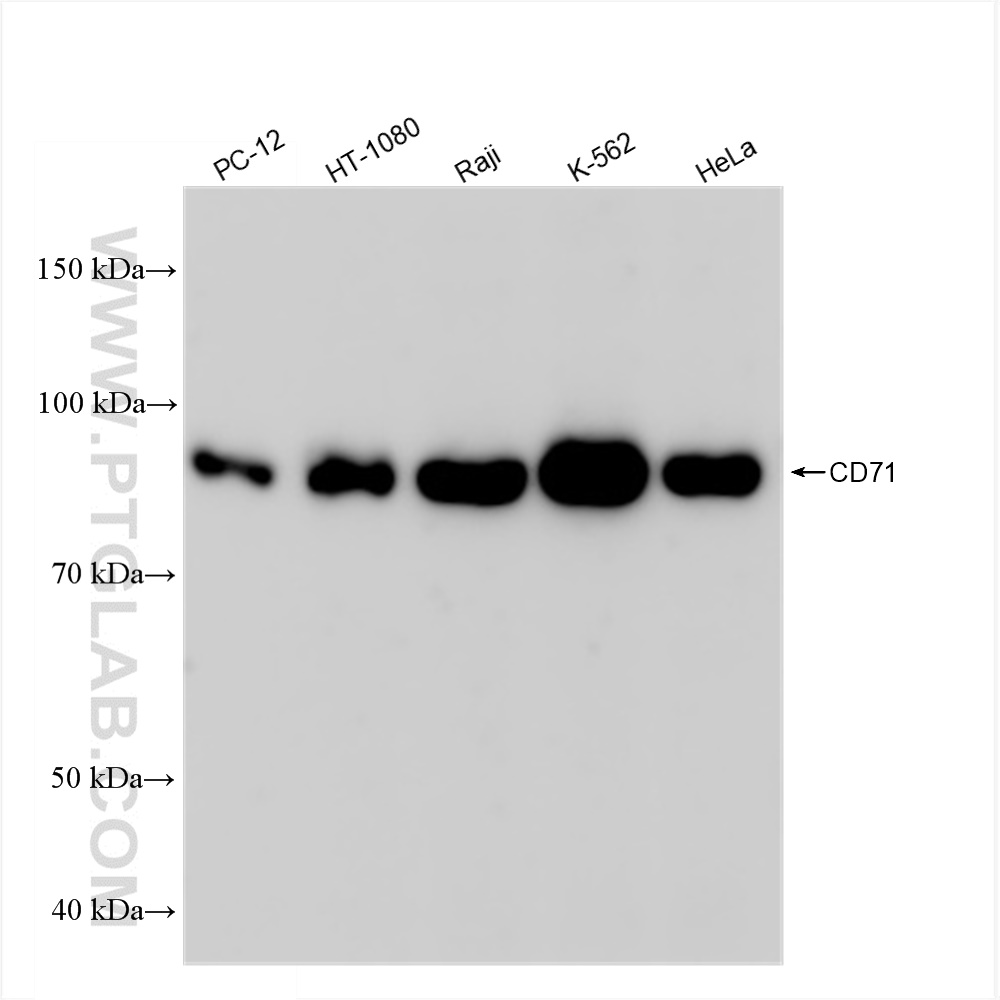 81793-2-RR targets CD71 in WB, IF/ICC, ELISA applications and shows reactivity with human, rat samples.