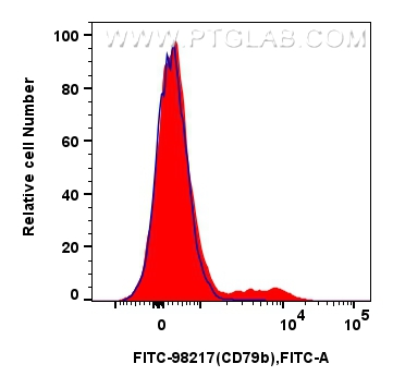 FITC-98217 targets CD79b in FC applications and shows reactivity with mouse samples.