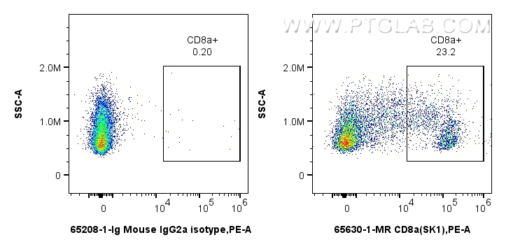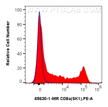 65630-1-PBS targets CD8 in FC applications and shows reactivity with human, monkey, non-human primates samples.