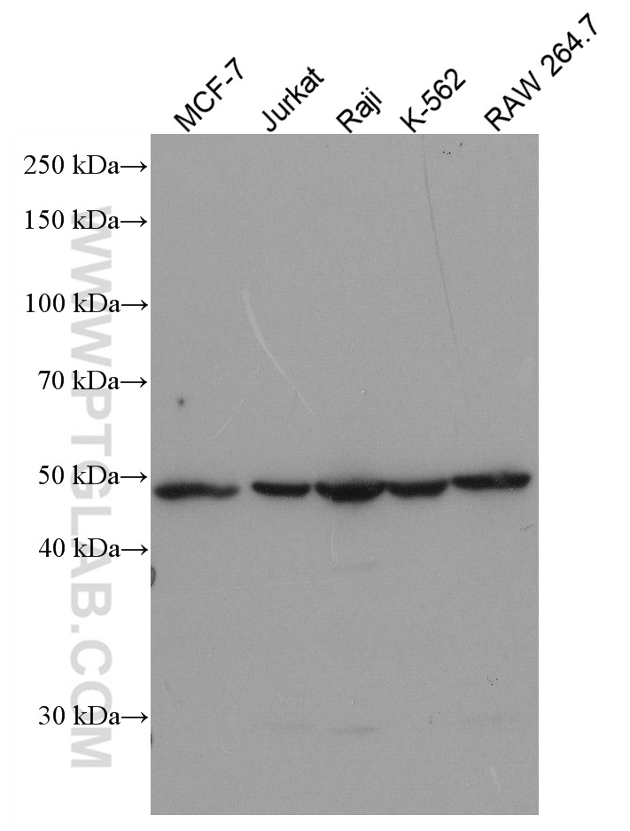 | Positive WB detected in | MCF-7 cells, Jurkat cells, Raji cells, K-562 cells, RAW 264.7 cells |