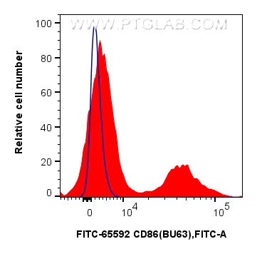 FITC-65592 targets CD86 in FC applications and shows reactivity with human samples.