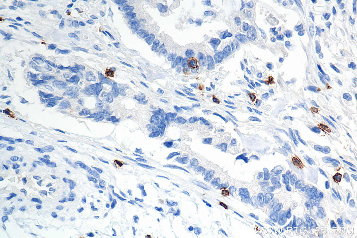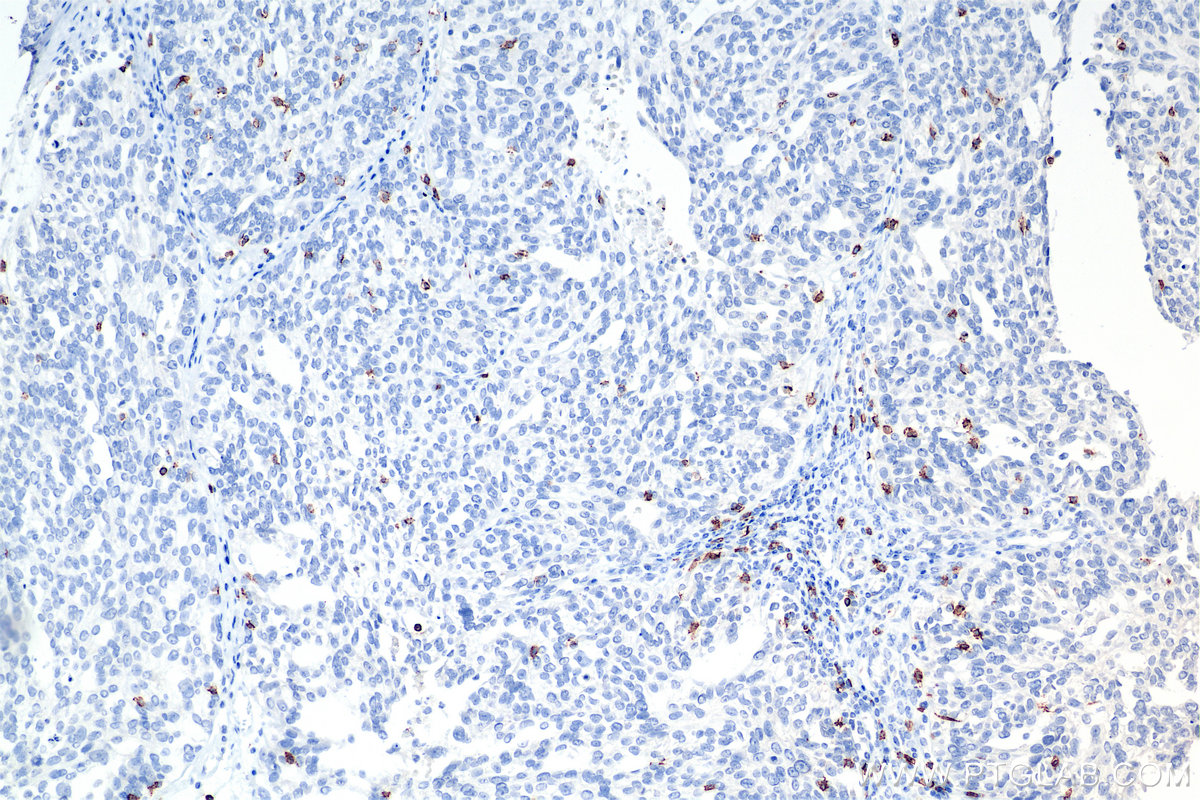 | Positive IHC detected in | human tonsillitis tissue, human ovary cancer tissue, human stomach cancer tissue, human rectal cancer tissue, human hepatocellular cancer, human breast cancer tissue, human placenta tissue Note: suggested antigen retrieval with TE buffer pH 9.0; (*) Alternatively, antigen retrieval may be performed with citrate buffer pH 6.0 |