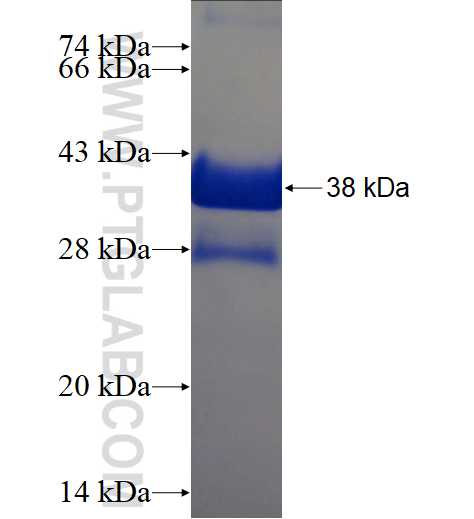| Formulation | The purified protein was Lyophilized from sterile PBS (58mM Na2HPO4,17mM NaH2PO4, 68mM NaCl, pH8.0). 5 % trehalose and 5 % mannitol are added as protectant before lyophilization. The elution buffer contain 100mM GSH. |