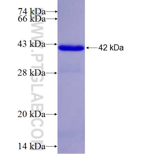 | Formulation | The purified protein was Lyophilized from sterile PBS (58mM Na2HPO4,17mM NaH2PO4, 68mM NaCl, pH8.0). 5 % trehalose and 5 % mannitol are added as protectant before lyophilization. The elution buffer contain 100mM GSH. |