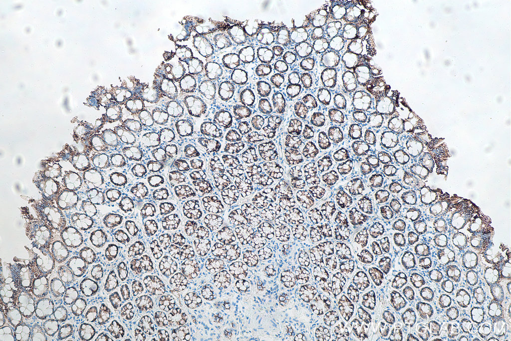 Positive IHC detected inhuman breast cancer tissue, human colon cancer tissue, mouse colon tissue, rat colon tissue