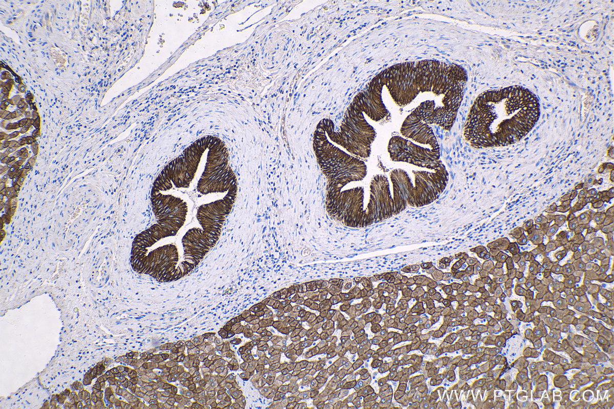 Immunohistochemical analysis of paraffin-embedded mouse liver tissue slide using 66187-1-Ig (Cytokeratin 18 antibody) at dilution of 1:1000 (under 40x lens). Heat mediated antigen retrieval with Tris-EDTA buffer (pH 9.0). This data was developed using the same antibody clone with 66187-1-PBS in a different storage buffer formulation.